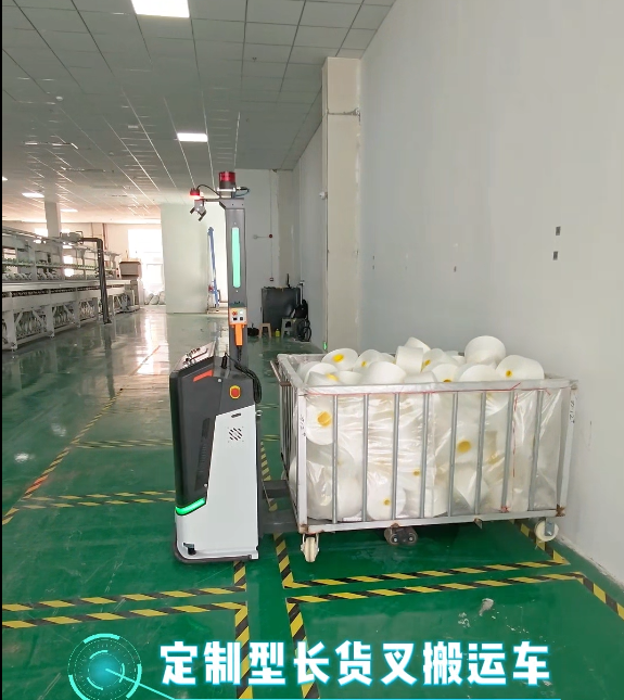 纺织行业精选案例--定制型长货叉无人搬运车自动对接电梯,自动上下楼,轻松实现跨楼层搬运一气呵成!